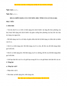 BÀI 22. BIẾN DẠNG CỦA VẬT RẮN. ĐẶC TÍNH CỦA LÒ XO (2 tiết) MỤC TIÊU 1. Kiến thức