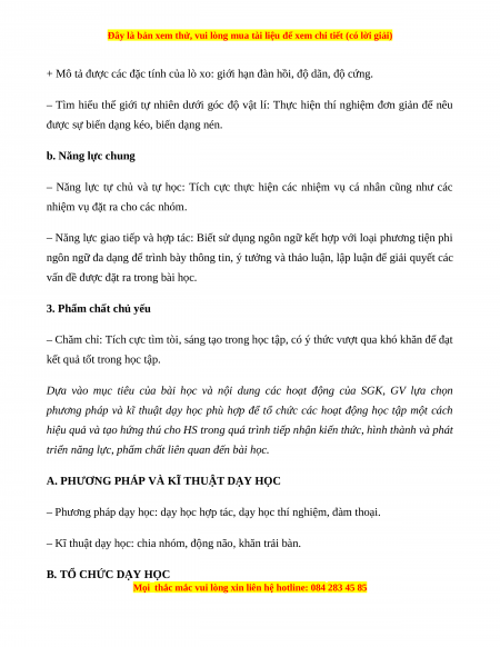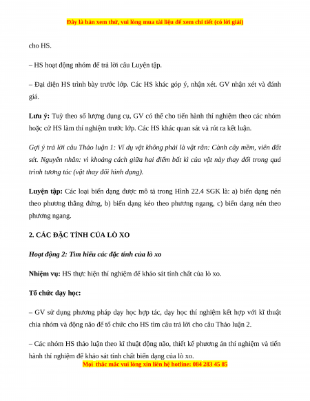+ Mô tả được các đặc tính của lò xo: giới hạn đàn hồi, độ dãn, độ cứng.