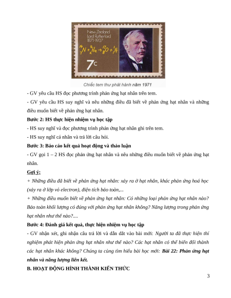 - GV chiếu hình ảnh chiếc tem thư phát hành năm 1971 có in hình Rutherford và phương