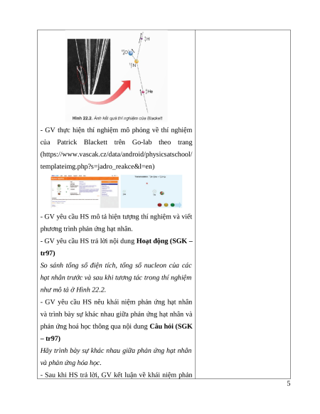- HS mô tả được và viết được phương trình phản ứng hạt nhân trong thí nghiệm của Blackett.