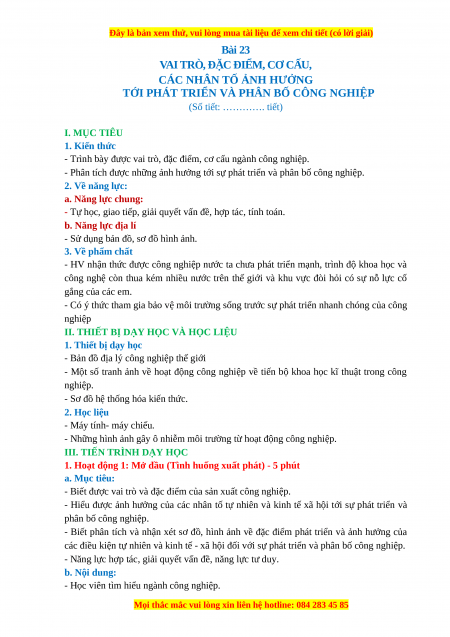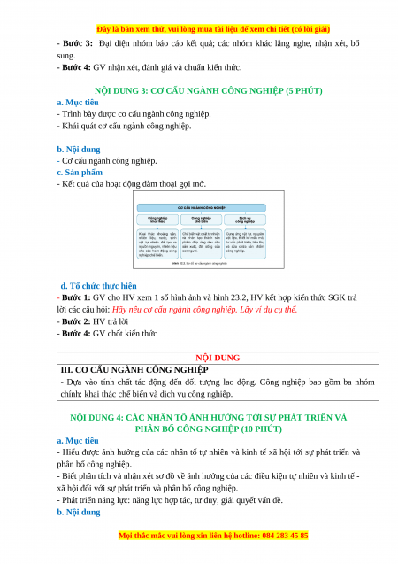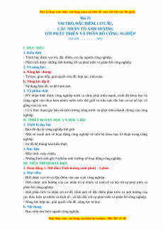 Giáo án Bài 23 Địa lí 10 Cánh Diều (2024): Vai trò, đặc điểm, cơ cấu, các nhân tố ảnh hưởng tới phát triển và phân bố công nghiệp