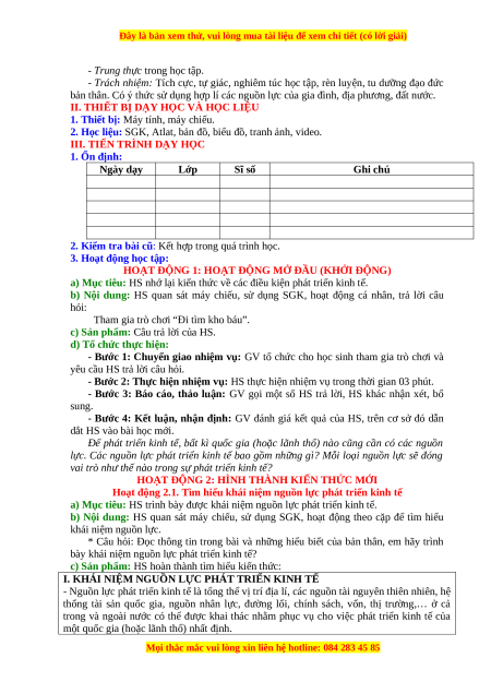 2. Học liệu: SGK, Atlat, bản đồ, biểu đồ, tranh ảnh, video.