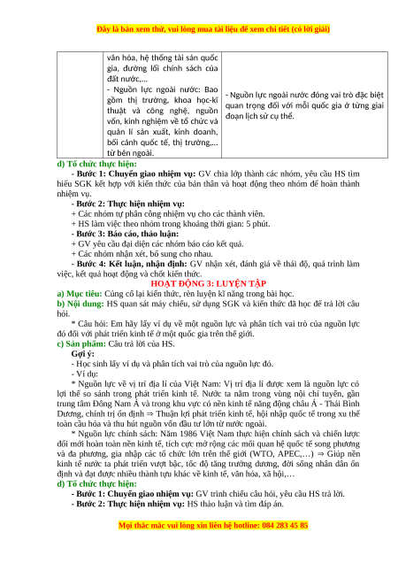 - Phân tích được sơ đồ nguồn lực. 2. Năng lực: * Năng lực chung:
