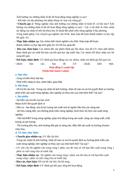 - Phân tích sơ đồ nhân tố ảnh hưởng đến sự phát triển và phân bố ngành nông nghiệp, lâm nghiệp, thủy sản. 2. Về năng lực: a. Năng lực chung: