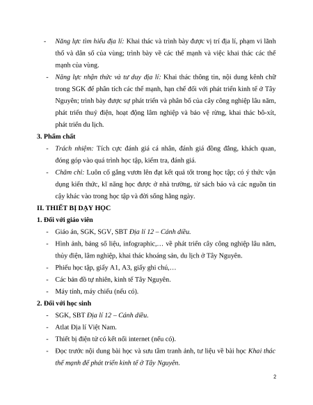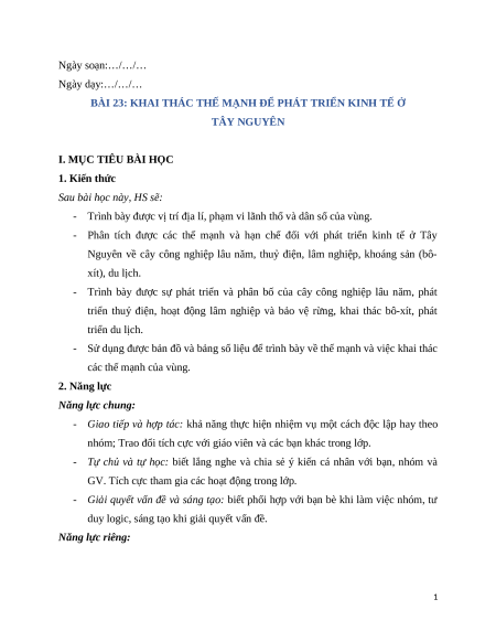 Giáo án Bài 23 Địa lí 12 Cánh diều: Khai thác thế mạnh để phát triển kinh tế ở Tây Nguyên