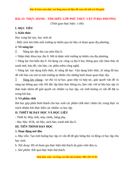Giáo án Bài 23 Địa lí 6 Cánh diều (2024): Thực hành Tìm hiểu lớp phủ thực vật ở địa phương