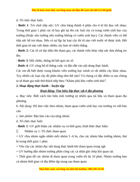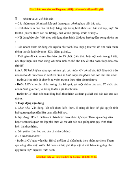 nếu thực hiện liên môn cùng với môn sinh có thể cho HS về nhà hoàn thiện báo cáo chi tiết)