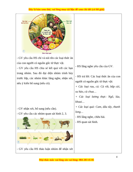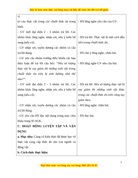 Giáo án Bài 23 Khoa học lớp 4 (Cánh diều): Vai trò của thực vật trong chuỗi thức ăn
