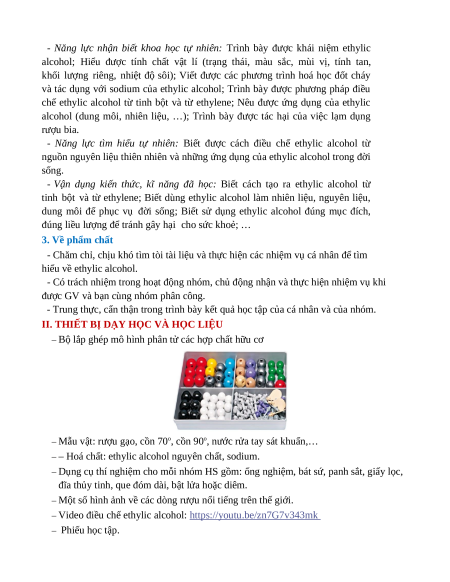 - Năng lực nhận biết khoa học tự nhiên: Trình bày được khái niệm ethylic
