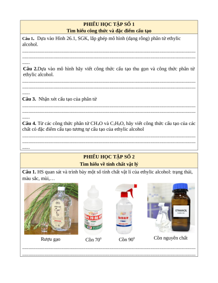 – Video điều chế ethylic alcohol: https://youtu.be/zn7G7v343mk – Phiếu học tập.