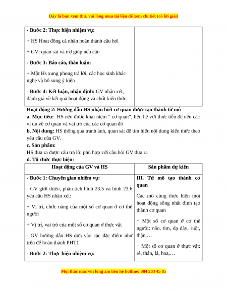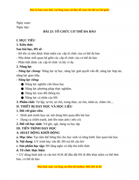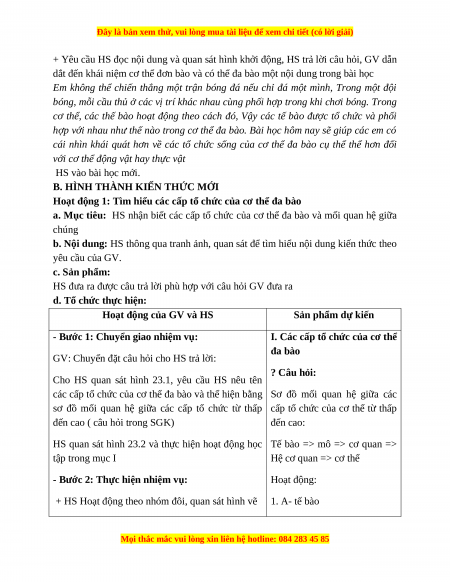 Giáo án Bài 23 KHTN 6 Kết nối tri thức (2024): Tổ chức cơ thể đa bào