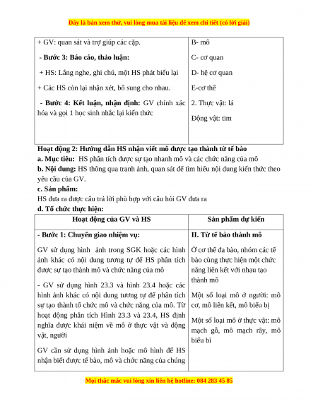 hoạt động phân tích Hình 23.3 và 23.4, HS định Một số loại mô ở thực vật: mô