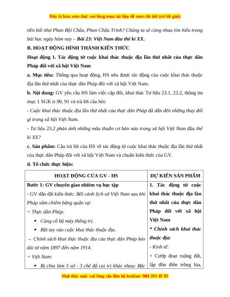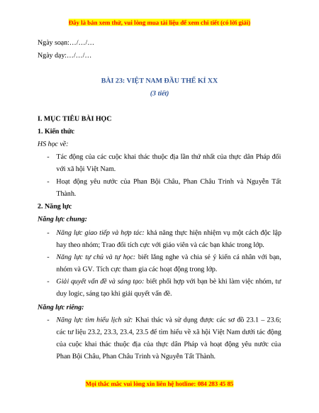 BÀI 23: VIỆT NAM ĐẦU THẾ KỈ XX (3 tiết)