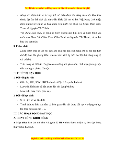 - Hoạt động yêu nước của Phan Bội Châu, Phan Châu Trinh và Nguyễn Tất Thành. 2. Năng lực