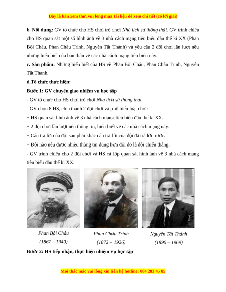 cho HS quan sát một số hình ảnh về 3 nhà cách mạng tiêu biểu đầu thế kỉ XX (Phan