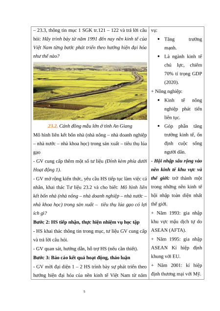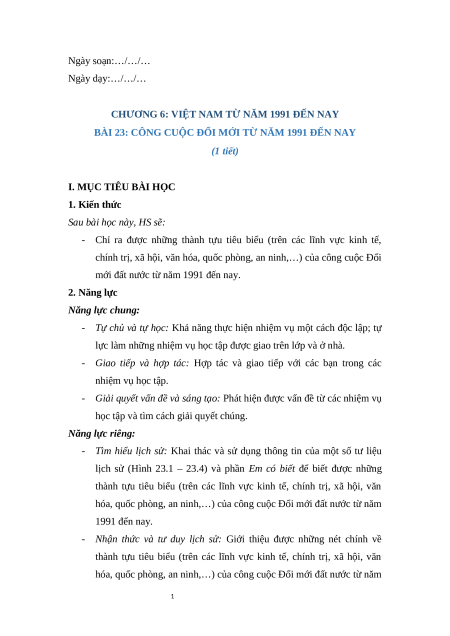 Giáo án Bài 23 Lịch sử 9 Chân trời sáng tạo: Công cuộc Đổi mới từ năm 1991 đến nay