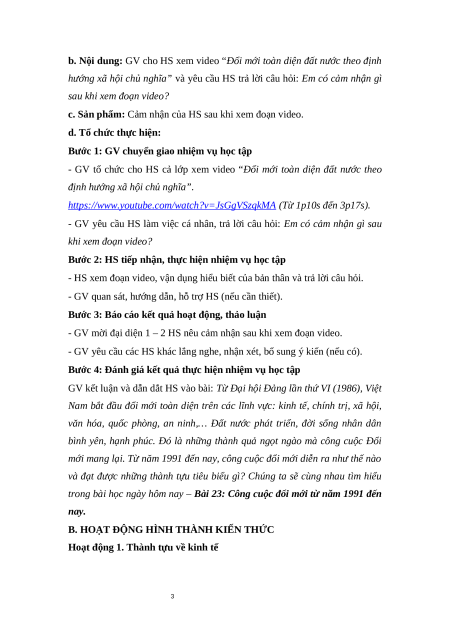 - GV tổ chức cho HS cả lớp xem video “Đổi mới toàn diện đất nước theo