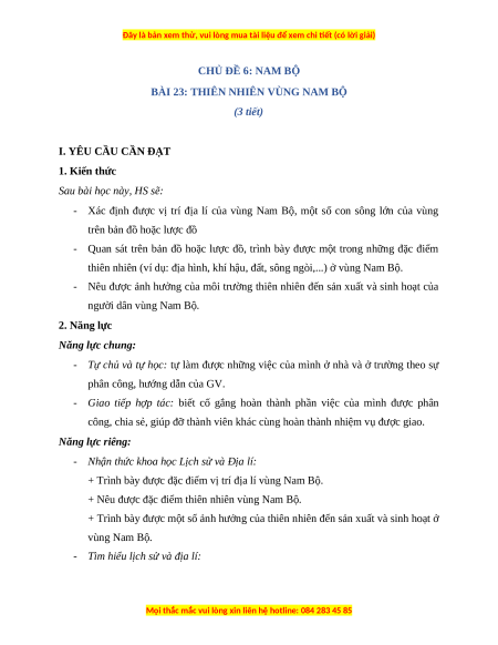 BÀI 23: THIÊN NHIÊN VÙNG NAM BỘ (3 tiết)