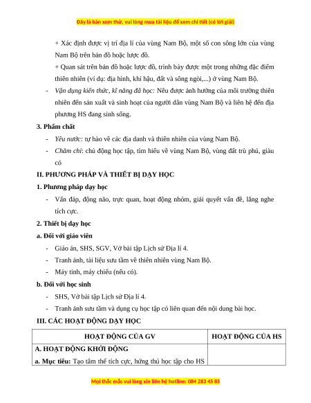 nhiên đến sản xuất và sinh hoạt của người dân vùng Nam Bộ và liên hệ đến địa phương HS đang sinh sống. 3. Phẩm chất