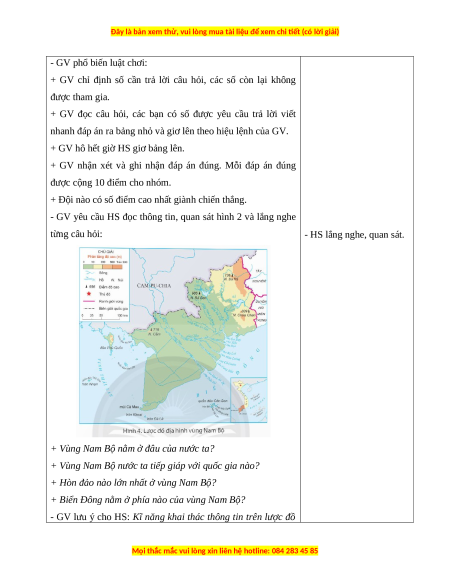 a. Mục tiêu: Thông qua hoạt động, HS biết được vị trí địa lí vùng Nam Bộ. b. Cách tiến hành