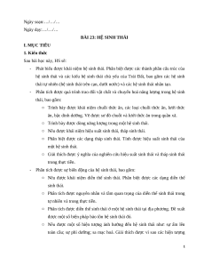 BÀI 23: HỆ SINH THÁI I. MỤC TIÊU 1. Kiến thức Sau bài học này, HS sẽ: