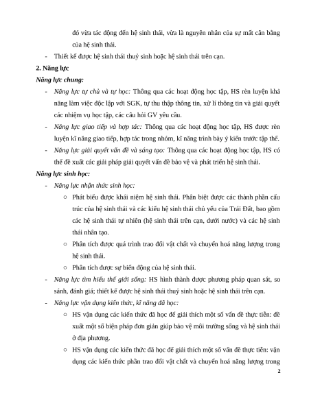 - Thiết kế được hệ sinh thái thuỷ sinh hoặc hệ sinh thái trên cạn. 2. Năng lực