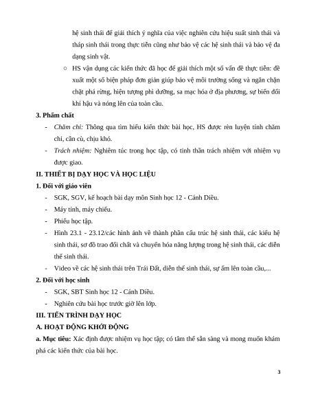 Giáo án Bài 23 Sinh học 12 Cánh diều: Hệ sinh thái