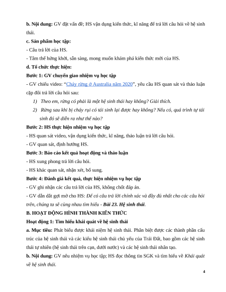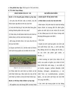 b. Nội dung: GV nêu nhiệm vụ học tập; HS đọc thông tin SGK và tìm hiểu về Khái quát về hệ sinh thái. 4