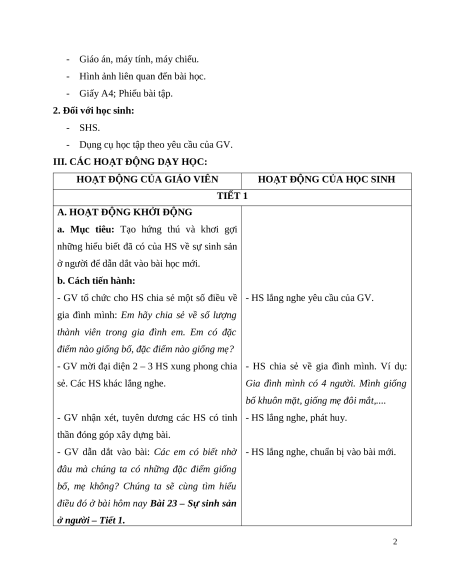 Giáo án Bài 23: Sự sinh sản ở người Khoa học lớp 5 Chân trời sáng tạo