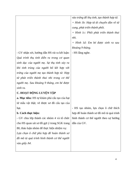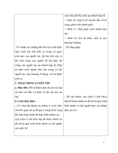 trình bày quá trình hình thành cơ thể người. 3. Phẩm chất: