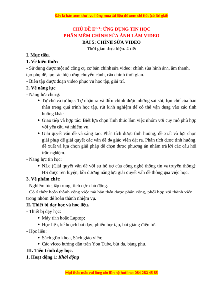 - Biên tập được đoạn video phục vụ học tập, giải trí. 2. Về năng lực: - Năng lực chung: