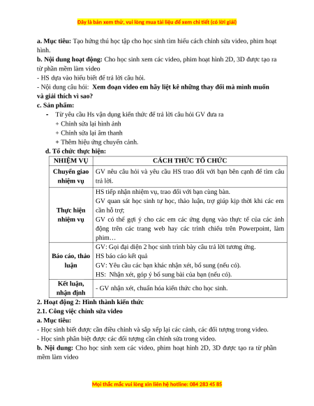 2.1. Công việc chỉnh sửa video a. Mục tiêu: