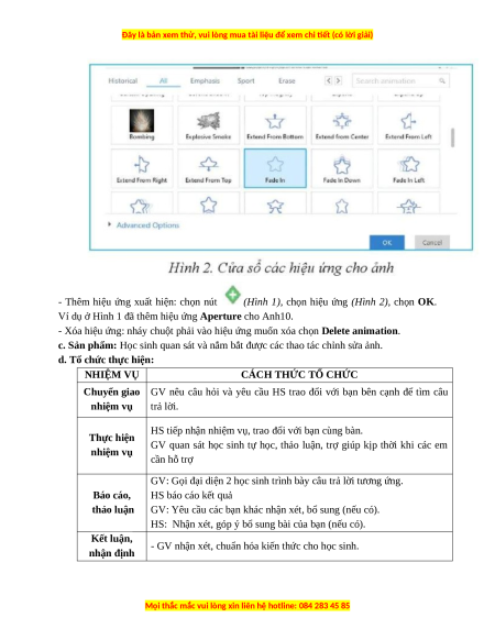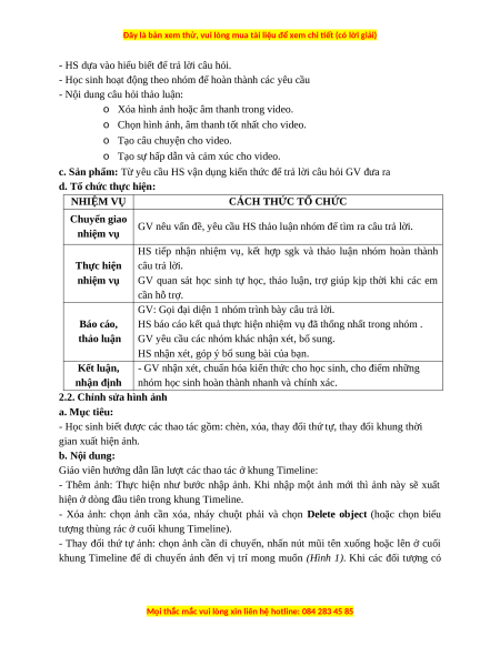 - Học sinh biết được các thao tác gồm: chèn, xóa, thay đổi thứ tự, thay đổi khung thời gian xuất hiện ảnh. b. Nội dung: