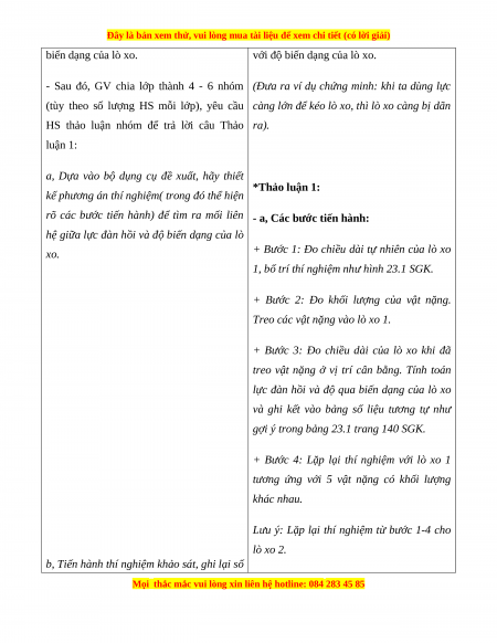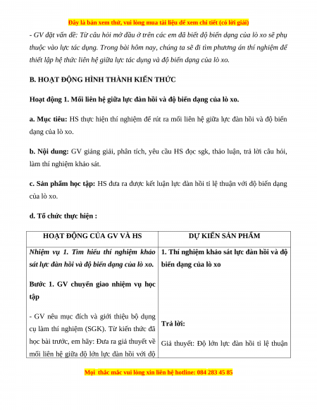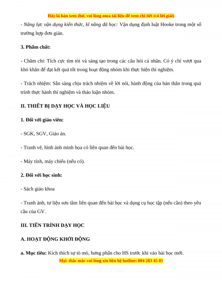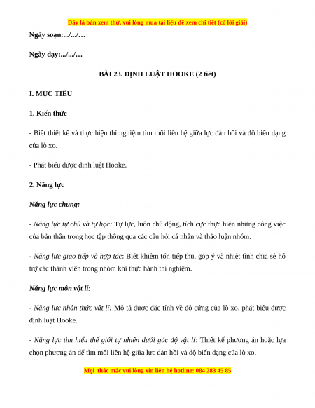 BÀI 23. ĐỊNH LUẬT HOOKE (2 tiết) I. MỤC TIÊU 1. Kiến thức