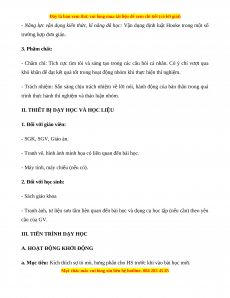 - Tranh ảnh, tư liệu sưu tầm liên quan đến bài học và dụng cụ học tập (nếu cần) theo yêu cầu của GV.