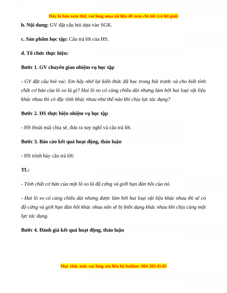 - Tính chất cơ bản của một lò xo là độ cứng và giới hạn đàn hồi của nó.