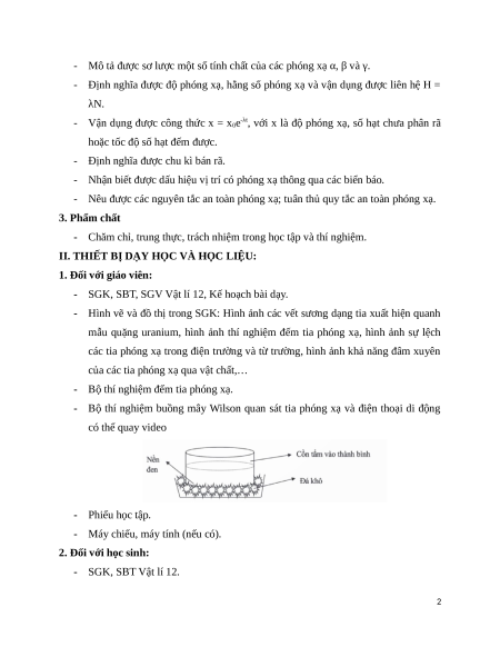 - Nêu được các nguyên tắc an toàn phóng xạ; tuân thủ quy tắc an toàn phóng xạ. 2. Năng lực
