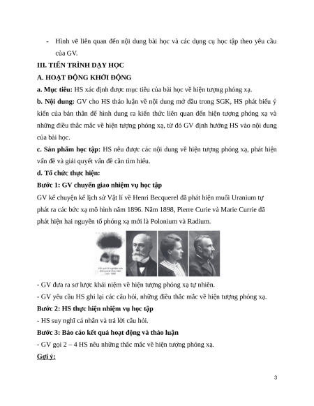 Hoạt động 1. Tìm hiểu về hiện tượng phóng xạ a. Mục tiêu: