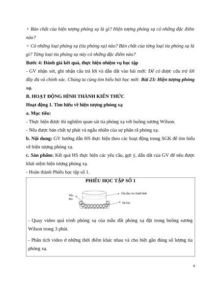 Giáo án Bài 23 Vật Lí 12 Kết nối tri thức (2025): Hiện tượng phóng xạ