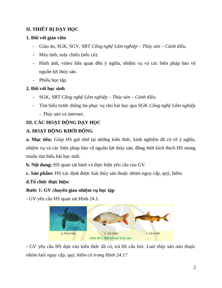 Giáo án Bài 24: Bảo vệ nguồn lợi thuỷ sản Công nghệ 12 Cánh diều