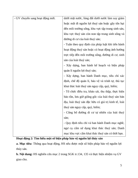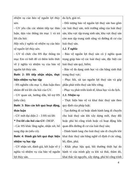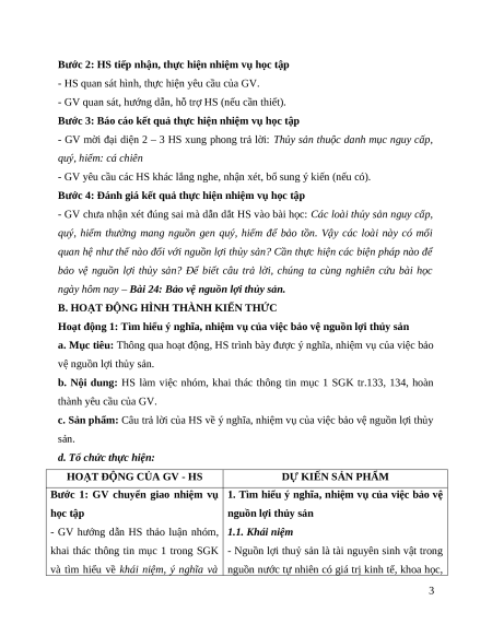 nhiệm vụ và các biện pháp bảo vệ nguồn lợi thủy sản, đồng thời kích thích HS mong