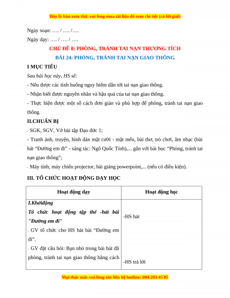Giáo án Bài 24 Đạo đức 1 Kết nối tri thức: Phòng, tránh tai nạn giao thông