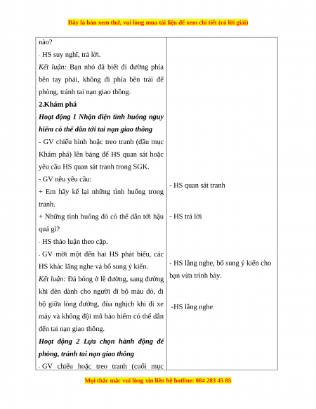 Hoạt động 1 Nhận diện tình huống nguy