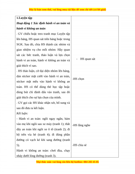 Hoạt động 1 Xác định hành vi an toàn và
