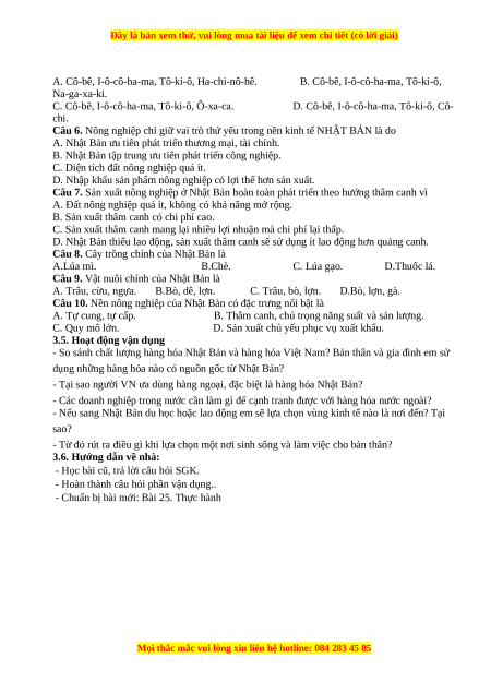 Câu 6. Nông nghiệp chỉ giữ vai trò thứ yếu trong nền kinh tế NHẬT BẢN là do