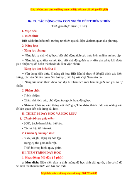 Bài 24: TÁC ĐỘNG CỦA CON NGƯỜI ĐẾN THIÊN NHIÊN