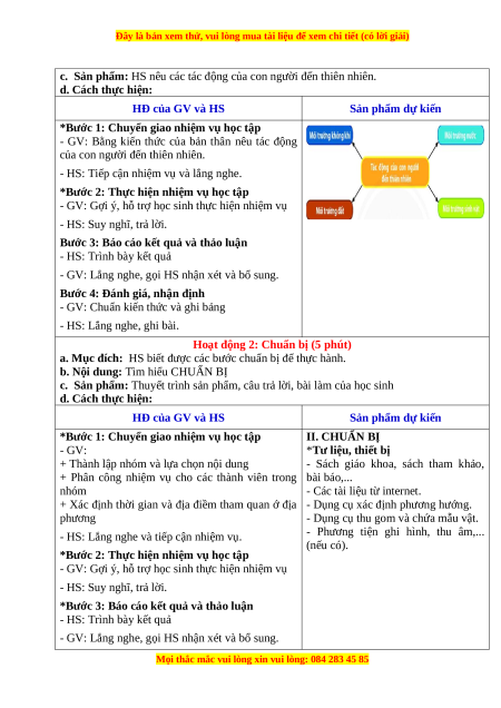 c. Sản phẩm: HS nêu các tác động của con người đến thiên nhiên. d. Cách thực hiện: HĐ của GV và HS