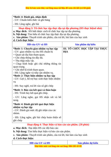 Hoạt động 3: Tổ chức học tập thực địa tại địa phương (HS thực hiệnở nhà)