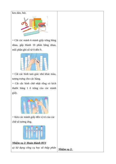 b) Làm công cụ học số thập phân theo ý lật số thập phân,…