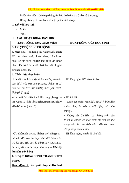 Hoạt động 1: Ăn phối hợp nhiều loại